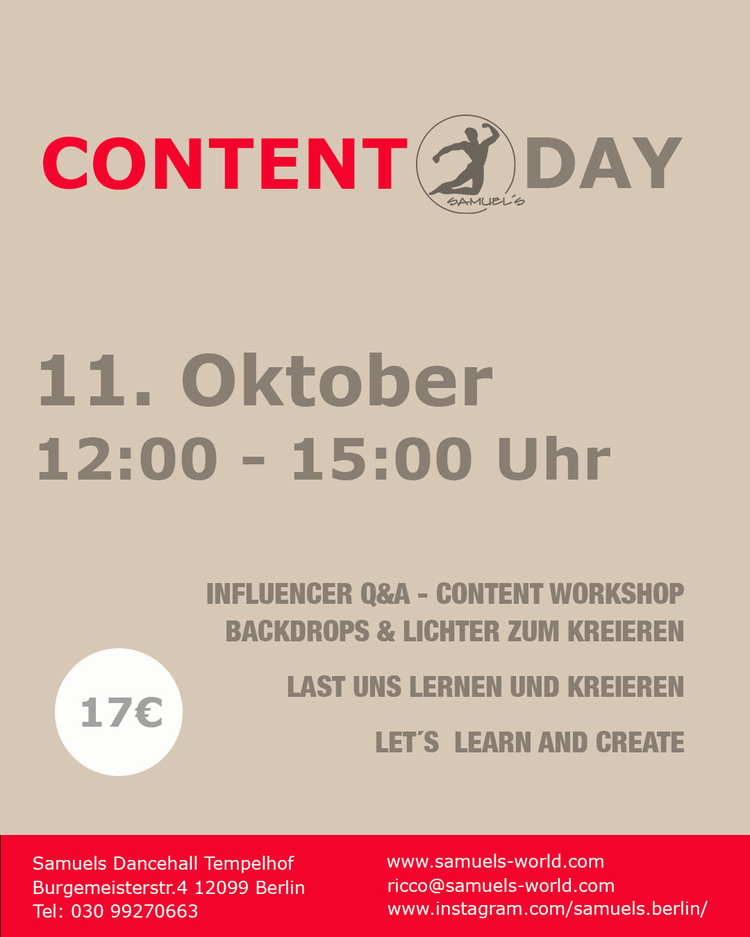 WannWasTickets11.10.2025Content@DAY in der Samuel`s Dance Hall Tempelhof Burgemeister Straße 4 >>>HIER<<<